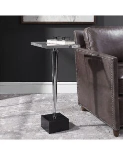 - Design details: this clean contemporary accent table features crisp layers of faux shagreen shelves in milk white with a light gray glaze, secured by steel supports in a plated brushed silver finish.