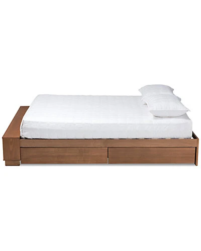 - Find a convenient solution to your bedroom storage needs with the Arthur bed. A wood bench fitted with three shelves lines the front of the frame, perfect for showcasing books or decorations. The bed is made in Malaysia and includes four underside drawers to make this piece especially helpful in rooms with limited space. Assembly is required and a box spring isnt necessary, as the bed comes with internal slats for mattress support. The clean design of the Arthur is complemented by wood, giving your space a modern, comfortable appeal. Dimensions: 13.9″ high x 58.27″ wide x 84.8″ deep; Height from floor to top of slat: 12.4″ high; Legs: 12.99″ high; Inside dimensions (mattress size): 54″ wide x 74″ deep; Storage: 34.45″ wide x 18.9″ deep x 7.87″ high.