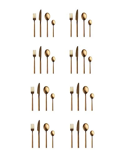 - Whether you want to give your everyday dinner a glamorous touch or create a stylish table setting for your next dinner party, with this gold-plated flatware set youll instantly glam up your dining table. The knife, fork, spoon and dessert spoon are each made of high-quality stainless steel and feel comfortable in your hands and your mouth. Once youve finished your meal, no need to worry about the clean-up, just pop the cutlery in the dishwasher and let the machine work its magic! Service for 8.