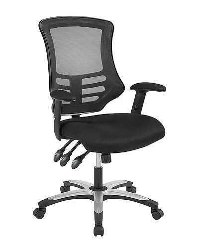 - Design details: Cruise through daily tasks with the Calibrate Office Chair. This sturdy nylon frame office chair features height adjustable armrests, a breathable mesh back with passive lumbar support, dense foam padded waterfall seat covered in mesh, full 360-degree swivel, and five dual-wheel casters for natural movement over either carpeted or hardwood surfaces. Experience productivity without compromising on comfort with this user-friendly work companion.