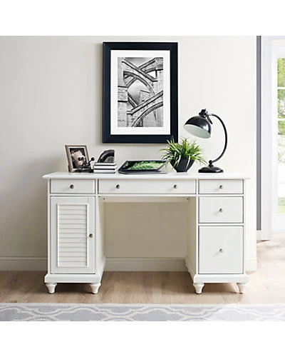 - Classic styling, signature louvers and ample storage are just a few highlights of the new Palmetto computer desk from Crosley Furniture. Featuring drop-down keyboard storage, file drawer, and plenty of wire management, the Palmetto computer desk does not sacrifice modern amenities for its good looks. Upgrade your home office, or place in the family room as a convenient stop to pay bills, wherever Palmetto goes, style will follow.