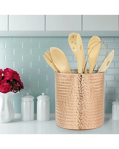 - Design details: The Jumbo Hammered Copper Utensil Holder by Old Dutch is a decorative and convenient solution to storing your favorite spatulas, spoons and other cooking utensils easily at hand. Measuring at 7.5″ high with a 7″ diameter, there’s generous room for all of your necessitiesIts durable Stainless Steel construction, and tarnish-resistant finish will keep it in great condition.