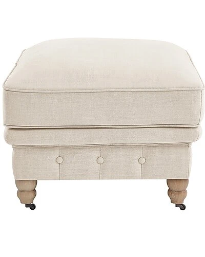- Design details: add a unique flair to your living room with the traditional design button tufted chesterfield cocktail ottoman. it adds a perfect touch of class to any living room setting. built to last, this ottoman is expertly crafted with a solid wood and plywood frame, upholstered in linen fabric that blends with any color palette you pick. classic button tufting complement many home decor styles and solid bun shape legs with casters provide easy maneuvering it from one place to another. whether you need it to be the perfect spare seat, a coffee table stand-in, or just a spot to put your feet up at the end of the day, this cocktail ottoman is a flexible accent. it is the perfect piece to reflect your regal taste and dress up your living space with luxurious opulence.