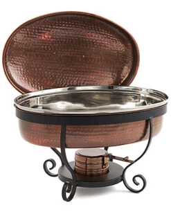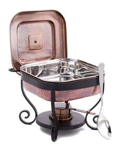 Hammered Antique Copper Chafing Dish & Stainless Steel Spoon Home