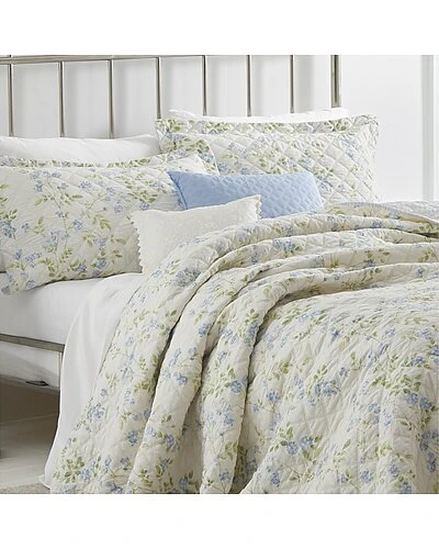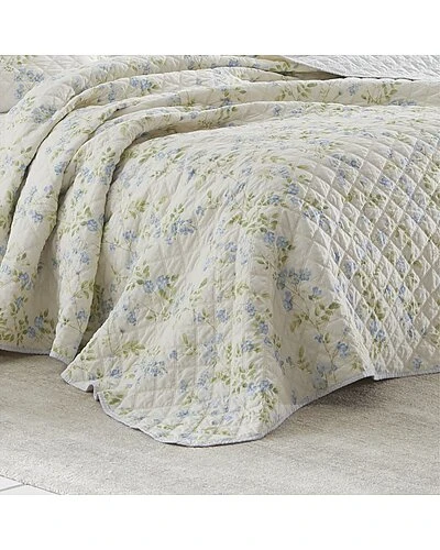 - Design details: welcome spring with the fresh, pretty fawna floral quilt set from laura ashley. the quilt features a soft blue and green floral pattern on white and reverses to a white floral design on light blue. prewashed for softness, this 100% cotton quilt set becomes cozier with each wash. filled with a blend of 80% cotton/20% poly it is light weight yet can be layered for year-round use. set includes one quilt and two shams for full/queen and king size, one sham for twin size. machine washable for easy care