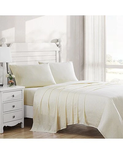 - Design details: sateen cotton sheets promote a good night’s sleep; smooth, sleek and soft; single ply, set includes a fully elasticized fitted sheet- premium encased elastic runs continuously around all four sides to keep the fitted sheet in place; 15″ fitted sheet pocket depth – fitted sheet fits mattress up to 18″, pillowcases have a standard opening with 4″ hem, oeko-tex certified, the mark of excellence for products that are healthy for you and healthy for the environment, the laura ashley serendipity gingham cotton sateen sheet set is a sunny yellow and white check