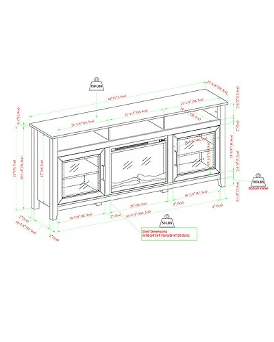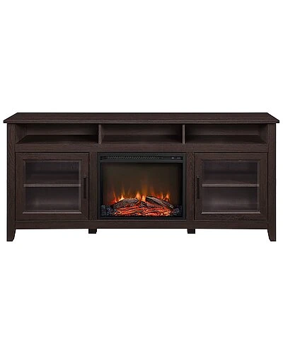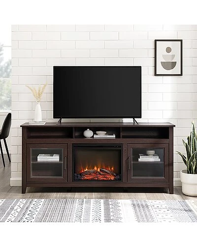 - Turn up the coziness factor during your next movie night with this fireplace TV stand. At the flip of a switch, control the heat and faux flames separately so you can take your movie nights up a notch. With a removable, plug-in fireplace insert that heats up to 400 square feet, you might never want your series binge to end. Two adjustable shelves and three cubbies equipped with cord management ports offer all the space you need for gaming consoles, media components, and streaming devices. The glass door fronts lend this practical piece a modern aesthetic so you can watch, style, and store with contemporary finesse.