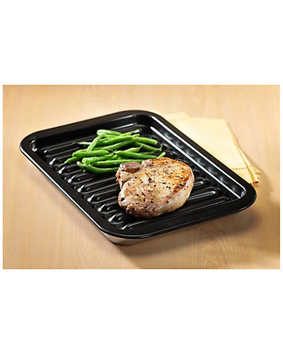 - Includes ribbed broiling rack and a multi-purpose baking/drip pan