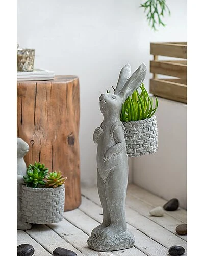 - Design details: this charming outdoor tall garden planter with a standing rabbit accent features a basket weave style planter that’s uniquely transitional. a great inspirational piece for outdoor spaces, this planter decor is made from cement and finished to stand up to the elements. it’s a standout accent for patios, porches, gardens, and much more.