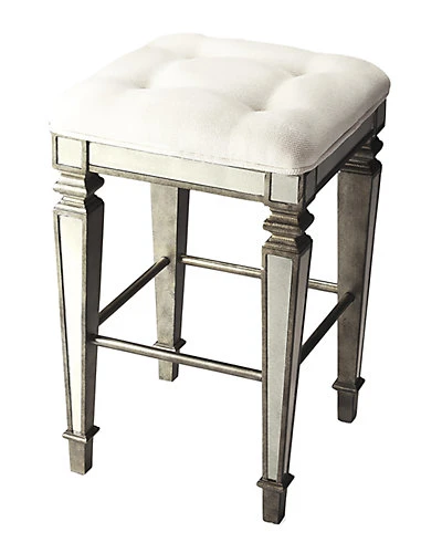 - Design details: This glamorous bar stool delivers vintage style to your home with antique mirror inlays along its legs and apron and a tufted cotton upholstered ivory cushion. It is hand crafted from select hardwood solids and wood products featuring a pewter finish for a stylish contrast.