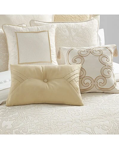 - Design details: complete the look with the Waterford Fine Linens Valetta decorative pillow set. The 14in x 20in decorative pillow front features side pleating and a tufted center button. The gold colored pillow reverses to a solid gold with tufted center button. The 16in x 16in decorative pillow showcases beautiful embroidery on the front in ivory and gold, with a solid ivory reverse. Four corner tassel details add extra interest. The 18in x 18in gold and ivory decorative pillow has a woven jacquard center framed with a mini flange and subtle striped pattern reversing to a small diamond pattern. removable pillow insert is included. The set includes 3 decorative pillows, pillow inserts included. Spot clean for care.